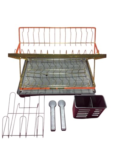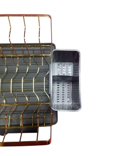 Generic - رف صحون معدني ذهبي وأسود لأدوات المائدة، بتصميم طبقتين مع حامل أدوات قابل للإزالة وحامل لوح تقطيع ونظام تصريف، حجم كبير
