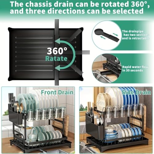 - 【فوهة دوارة 270 درجة، تتكيف بمرونة مع تصميم المطبخ】 على عكس رفوف الأطباق العادية، فهي تتميز بفوهة دوارة 270 درجة. اضبط اتجاه الصرف لمحاذاة الحوض، واستنزاف المياه المتبقية بسرعة، وتجنب تراكم المياه والبكتيريا. الفوهة القابلة للفصل سهلة التنظيف