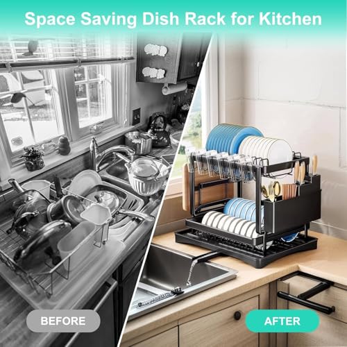 - 【سهل التركيب بدون عبء، مناسب لمختلف سيناريوهات المطبخ】 بدون أدوات وسهل التجميع. حجمه يناسب معظم أسطح المطبخ، مثالي للمطابخ الصغيرة أو الكبيرة. يبسط رف تخزين المطبخ وتجفيف الأطباق من جميع النواحي تخزين أدوات المائدة وتصريفها بكفاءة.