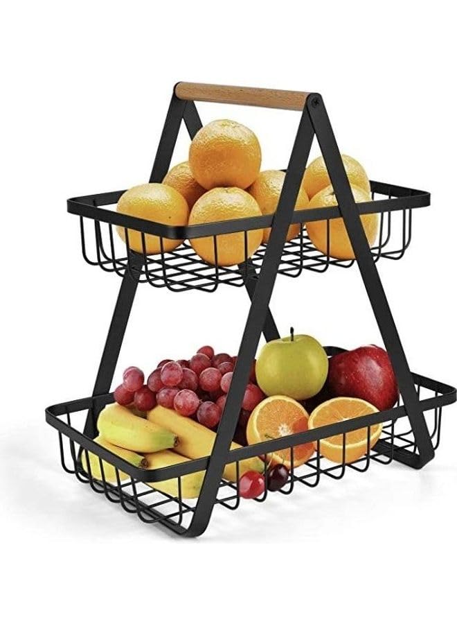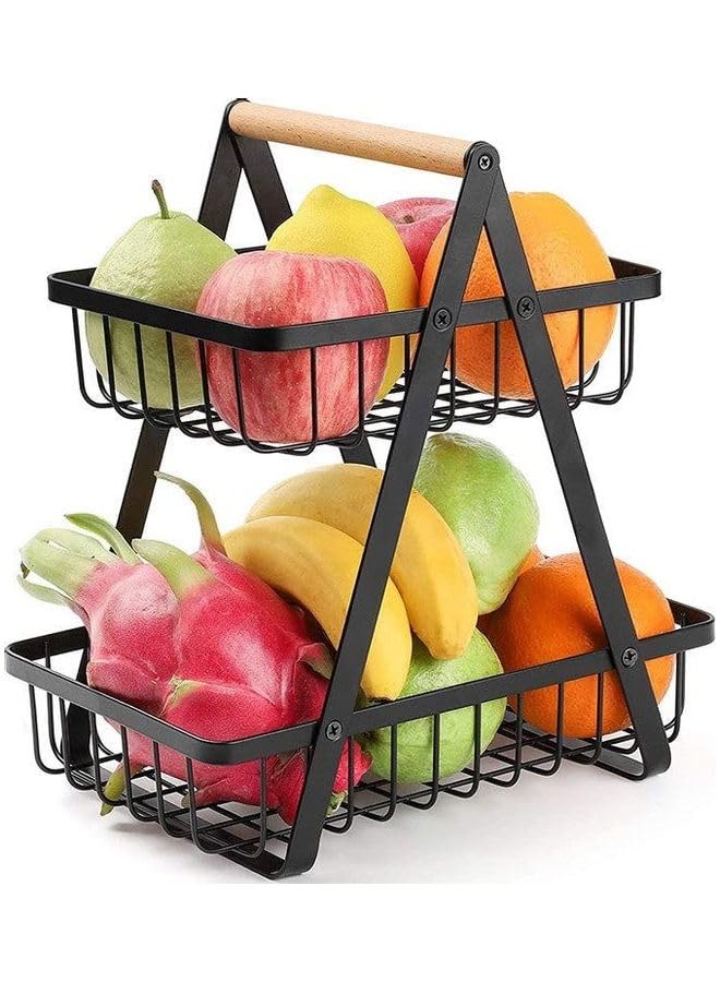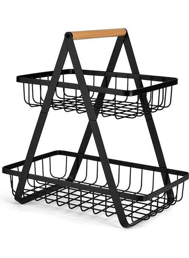 generic - رف تخزين سلة فاكهة بطبقتين اسود 10.6 × 6.7 × 11.4 انش
