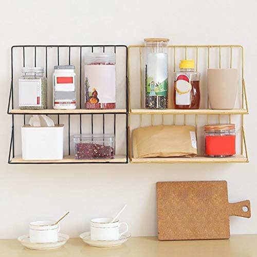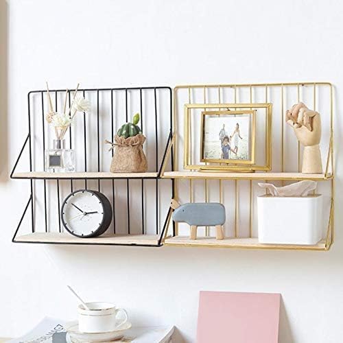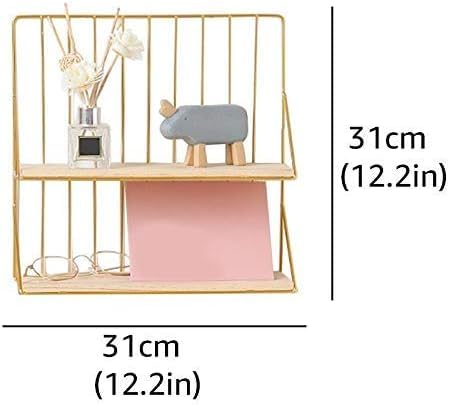 AREXOL - رف جداري خشبي ومعدني ذهبي بطابقين لتنظيم العطور والمكياج والديكور المنزلي والمكتبي تصميم عصري عملي وأنيق لغرف النوم والمكاتب