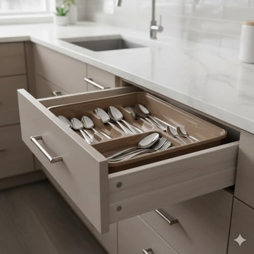 - لون بيج عملي: يأتي بلون بيج محايد يتناسب مع ديكورات المطبخ المختلفة ويضيف لمسة أنيقة إلى أدراجك
