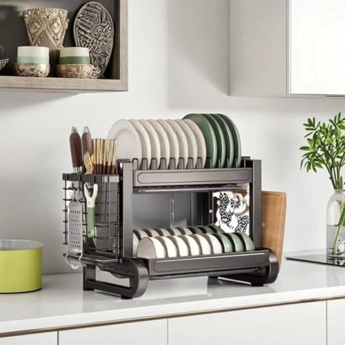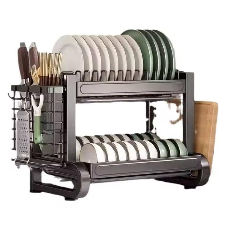 - مطبقية معدنية متينة بلمسة أنيقة باللون الأسود. تصميم من طابقين لزيادة السعة وتوفير المساحة. مزودة بمصفاة جانبية لتصريف المياه بكفاءة. تساعد على تجفيف الأطباق والأواني بشكل صحي بدون الحاجة للمناشف. مثالية لتنظيم المطبخ والحفاظ على الأغراض مرتبة.
