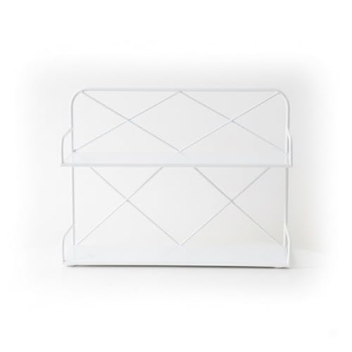 generic - منظم رفوف معدني وخشبي بطبقتين لرف تخزين سطح المطبخ وبرطمانات التوابل ومحطة القهوة والحمام او المكتب حل تخزين انيق ومتين (ابيض)