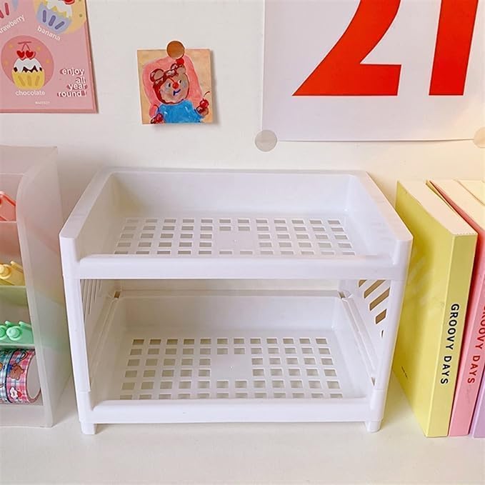 Generic - صندوق تنظيم بلاستيك ميني بدورين لترتيب أدوات الحمام والمطبخ وأغراض التجميل بتصميم عملي صغير لتوفير المساحة وسهولة الاستخدام | من عام