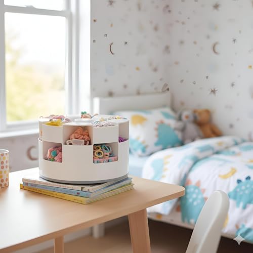 - يتميز منظم الصندوق الدوار هذا بتصميم بسعة كبيرة مع مساحة تخزين من طبقتين، مما يسمح بفصل فعال وسهولة الوصول إلى الملابس الداخلية والأوشحة والمجوهرات والمكياج والضروريات اليومية في وحدة واحدة مدمجة.