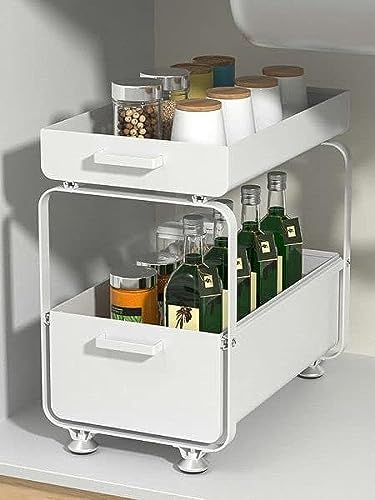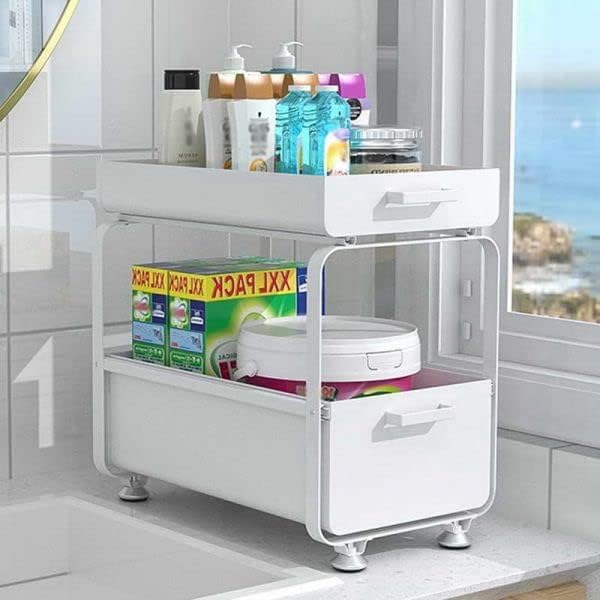 Generic - سلة تنظيم بأدراج منزلقة من طبقتين المطبخ (أبيض)