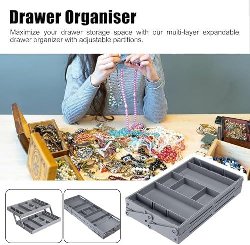 Spaceshoop - منظم أدراج من سبيس شوب، بتصميم تركيبي، باللون الرمادي، مصنوع من البلاستيك، قابل للتعديل والطي والتكديس، طبقتين