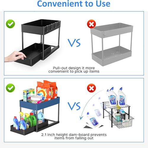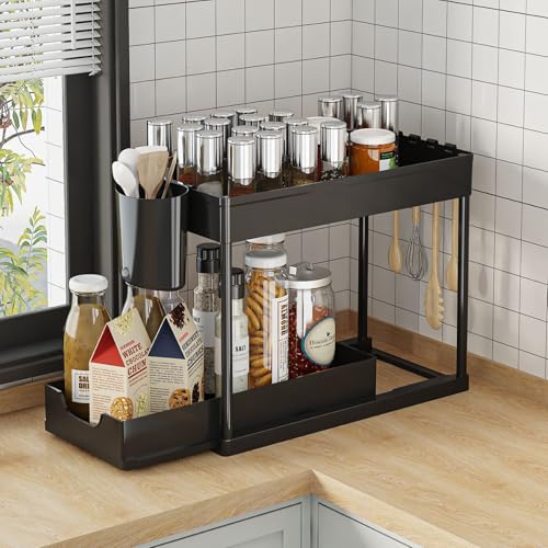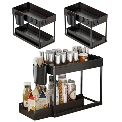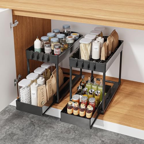 YY-Recheer - منظم تحت الحوض من طبقتين، رف تخزين منزلق قابل للسحب، منظم خزانة متعدد الاغراض للمطبخ والحمام