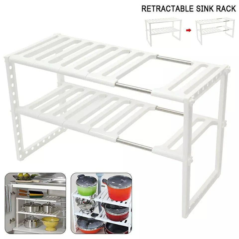 Generic - رف تخزين طبقتين تحت الحوض قابل للتعديل للمطبخ تنظيم المساحة وحدة تلسكوبية قابلة
