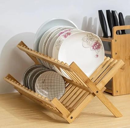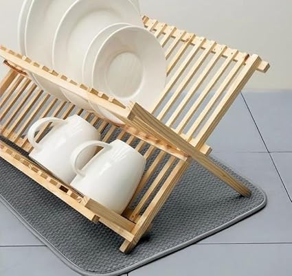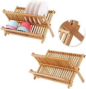 Generic - مطبقية صحون خشبية من دورين لتجفيف الأطباق والأكواب – تصميم أنيق وعصري من الخشب الطبيعي يوفر مساحة وتنظيم للمطبخ