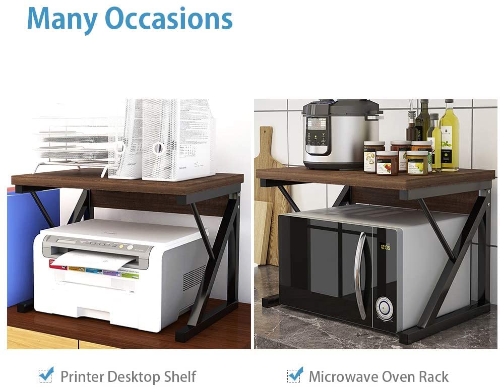 - رف طابعة لسطح المكتب: يتميز بأرفف من الخشب وإطار من المعدن ويعد أداة لا غنى عنها في مكان العمل لتنظيم الطابعة والورق وغير ذلك. حجم مثالي ومناسب للاستخدام في المكتب المنزلي.