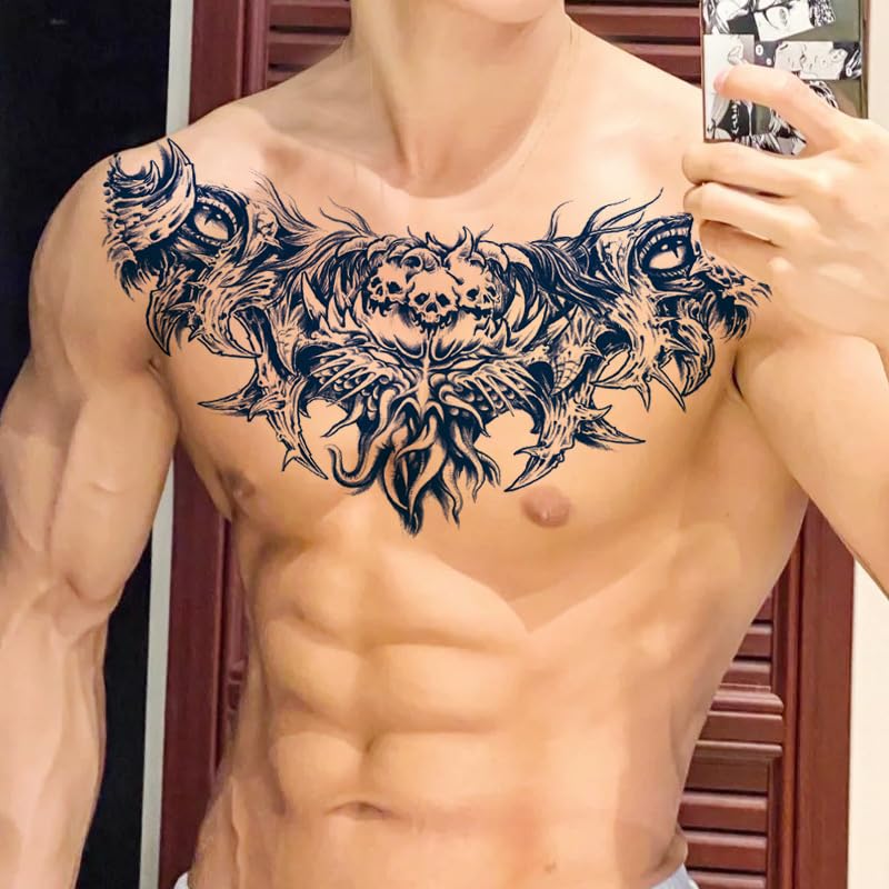 Generic - تاتو مؤقت شبه دائم مدة أسبوعين مقاوم للماء بتصميم تنين وهيكل عظمي للنساء والفتيات، وملصقات تاتو مؤقتة واقعية للرجال على الصدر والظهر