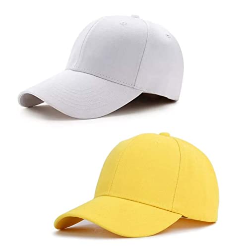 Generic - 2 قبعة رياضية أبيض و أصفر، 12، للجنسين