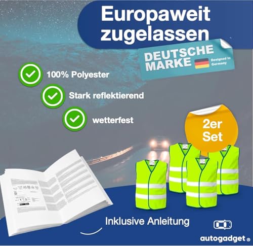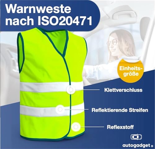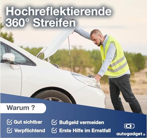 autogadget - فيست أمان عالية الوضوح، فيست واقي لحوادث السيارة 2024 عاكس للسيارة والشاحنة، لون أصفر نيون - اكسسوارات السيارات، قطعتان، لون أصفر، موديل ISO20471