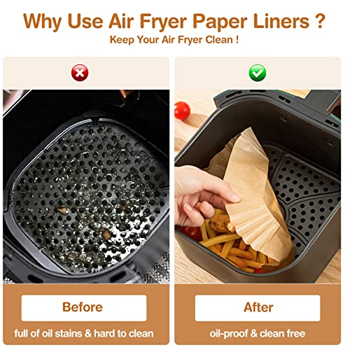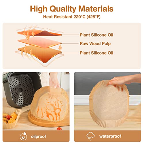 Diboniur - ورق فرن للقلاية الهوائية مقاس 20 سم من ديبونيور، 100 ورقة للمقلاة الهوائية، غير لاصق، فرن ورقي للاستعمال مرة واحدة للقلاية الهوائية سعة 5-8 لتر والفرن ةالقلايات والميكروويف (مربع)