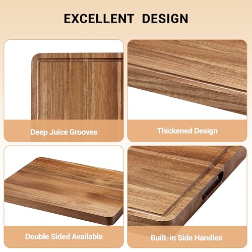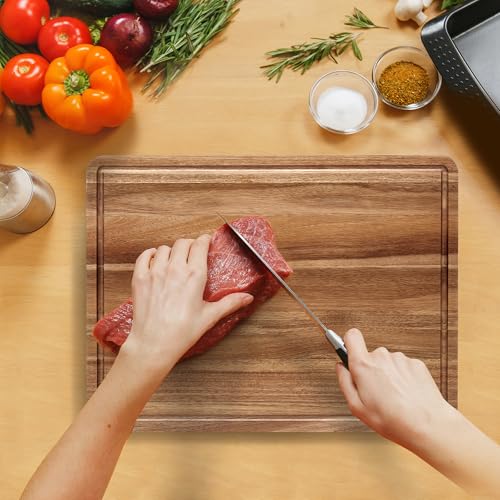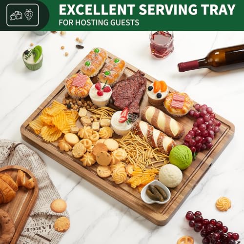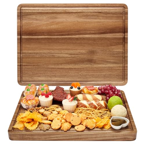 ActiveTrail - لوح تقطيع كبير من خشب الاكاسيا مقاس 20×15 انش - لوح تقطيع بسمك 1.3 انش قابل للعكس مع اخدود عصير عميق ومقابض جانبية، شديد التحمل للحوم والخضروات والجبن، مناسب للسكين