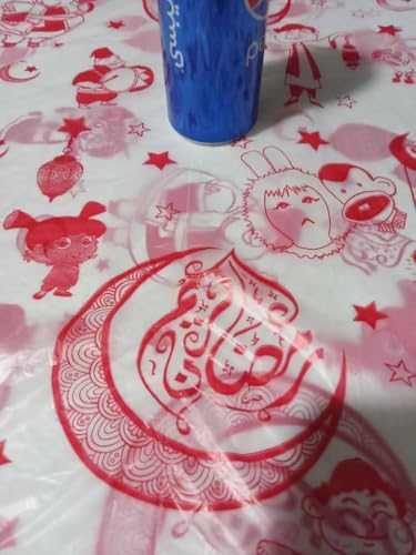 - تصميم رمضاني مميز: مزين بنقوش وزخارف رمضانية باللون الأحمر على خلفية بيضاء تضفي أجواء احتفالية على مائدتك
