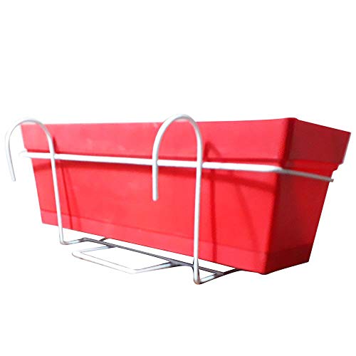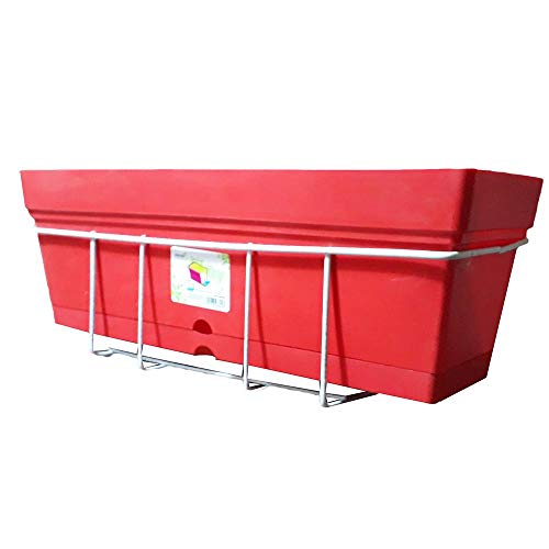 Other - وعاء مستطيل لزراعة النباتات 50سم -أحمر زهري-مع حامل للبلكونة، بلاستيك , احمر