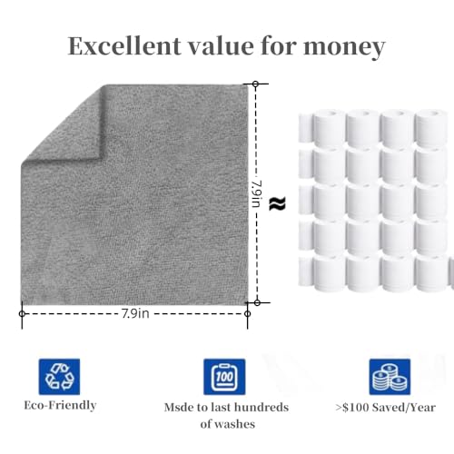Rubvrenti - 20 ورقة قماش للتنظيف من المايكروفايبر، مناشف تنظيف في صندوق (عبوة من 20 قطعة)، مناديل قابلة لاعادة الاستخدام 7.9 انش × 7.9 انش للتنظيف، مناشف تيري بدون حواف وخرق المتجر والغسيل والغبار للاستعمال مرة