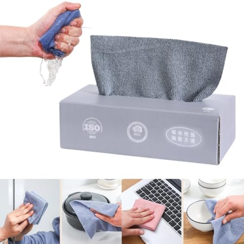 Poxvalzor - قطع قماش للتنظيف قابلة لإعادة الاستخدام من المايكروفايبر، فوط تنظيف للاستعمال مرة واحدة، أقمشة أطباق المطبخ مع صندوق توزيع، مناديل مبللة للسيارة، أقمشة تنظيف للمطبخ المنزلي، 20 قطعة (لون رمادي)