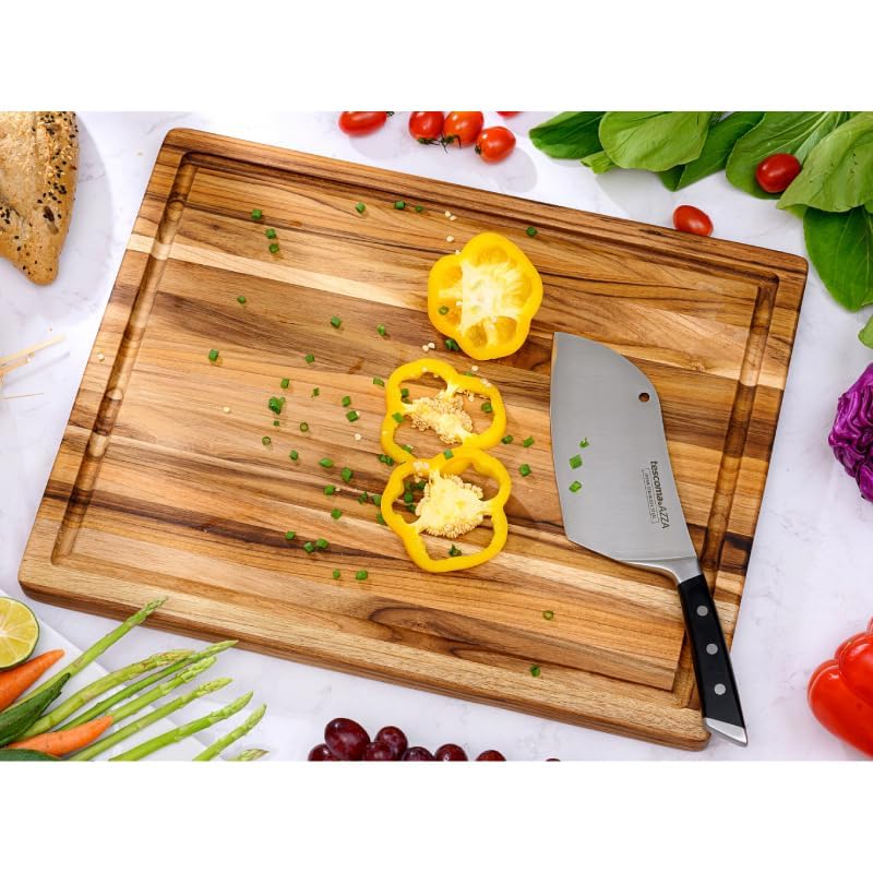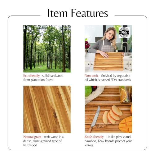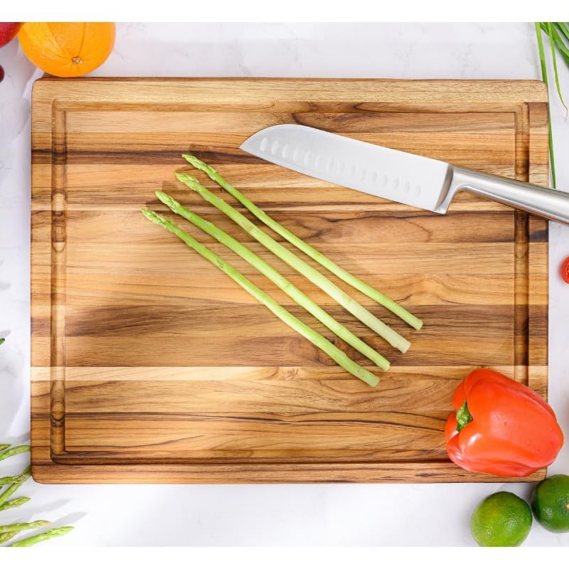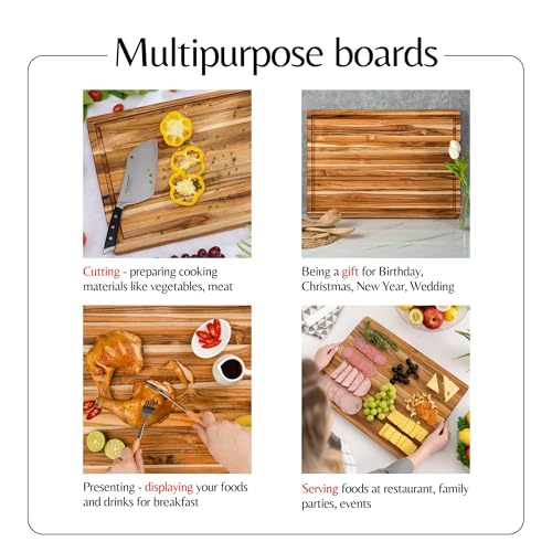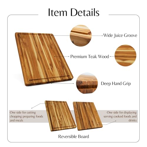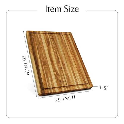MilleLoom - لوح تقطيع كبير من خشب الساج مقاس 20 × 15 انش - لوح تقطيع خشبي كبير للغاية مع اخدود للعصير - لوح تقطيع قابل للعكس للحوم والخضروات