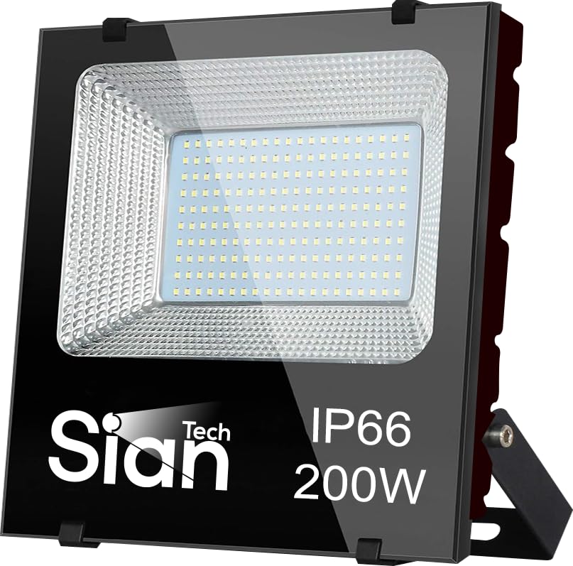 Sian Tech - كشاف وجهات فلود لايت 200 وات إضاءة دافئة سيان تك - 3000 كليفن - 20000 لومن - 100:265 فولت - درجة وضوح اللون 85، الومنيوم بالكامل - 50000 ساعة تشغيل
