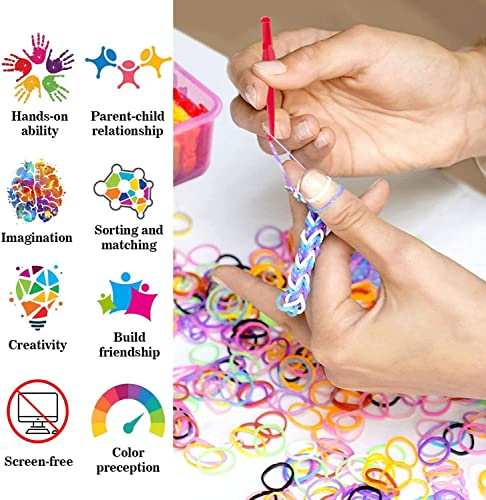 - مجموعة أساور نول ذاتية الصنع - تحتوي مجموعة الأربطة المطاطية على حوالي 2000 حلقة مطاطية (23 لونًا غنيًا)، 40 خرزة حروف، 8 قلادات سيليكون (شكل عشوائي لللون)، 15 خرزة دائرية ملونة، 8 خرزات فاكهة (شكل عشوائي لللون)، 2 نول على شكل حرف Y، 2 خطاف كروشيه، 2 مشبك خطاف، 40+ مشبك استقبال. العبوة مصنوعة من صندوق بلاستيكي، تخزين مريح وسهل التمييز.