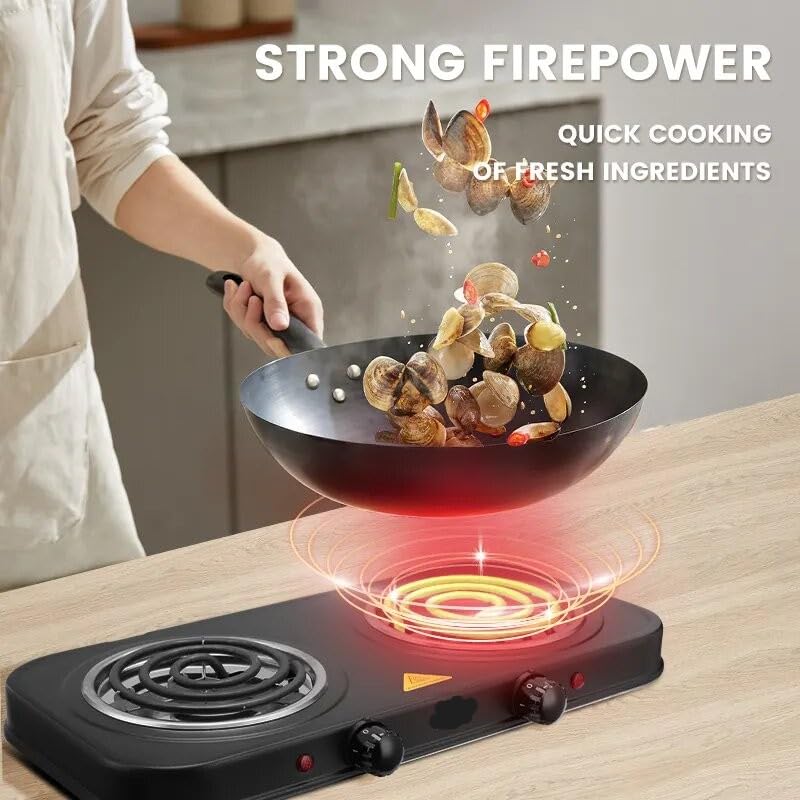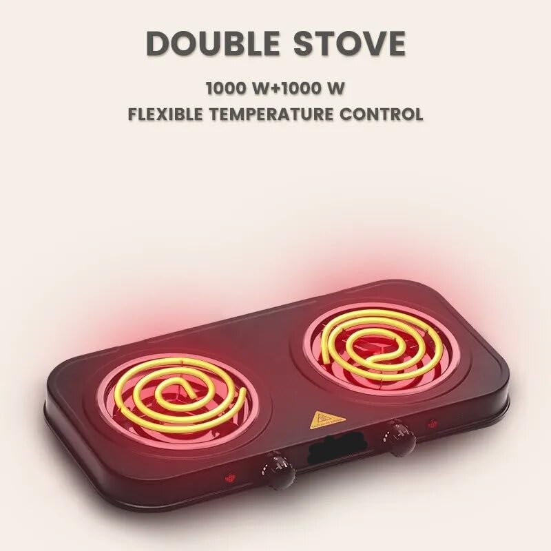 Generic - سخان كهربائي مزدوج بقدرة 2000 واط – سطح تسخين مزدوج 130 ملم × 2 – تحكم بالحرارة – مؤشر ضوء – أقدام مانعة للانزلاق – سهل التنظيف – 220-240 فولت