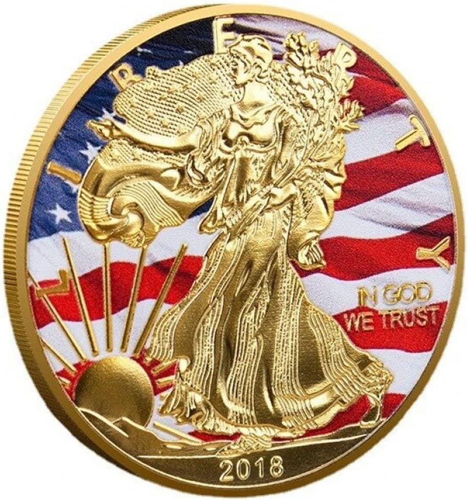 Generic - قطعة تذكارية أمريكية فاخرة 2018، نسر الحرية المطلي بالذهب، تصميم العلم الأمريكي، قطعة للجامعين والهواة، نقش ثلاثي الأبعاد