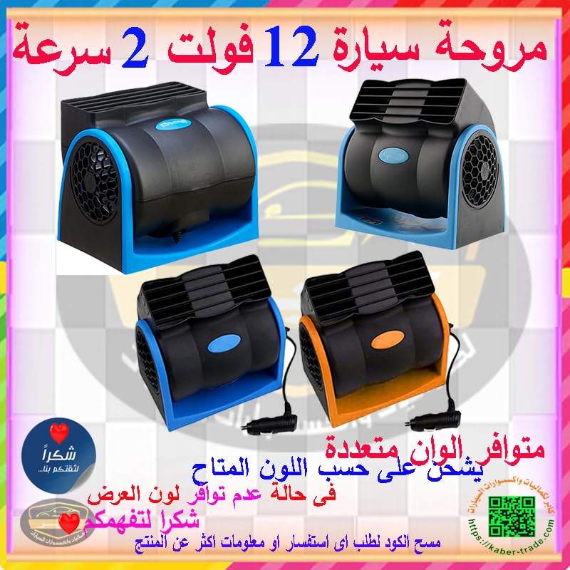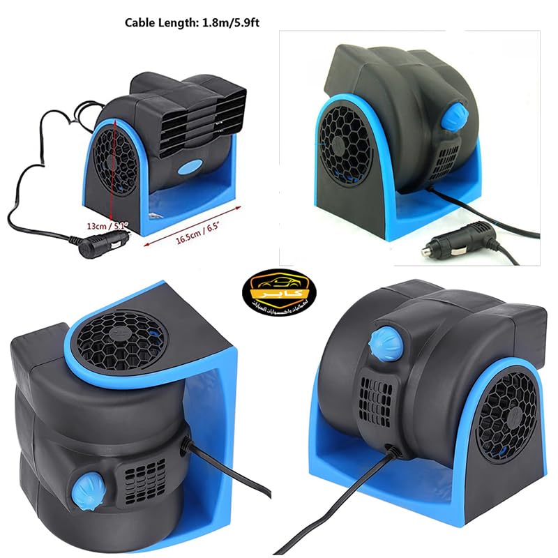 Generic - مروحة سيارة لتبريد الهواء داخل السيارة 12 فولت قابل للتعديل ، بسرعتين تعمل على ولاعة السيارة (ازرق ، كود : 1417) من كابرمصر 2020