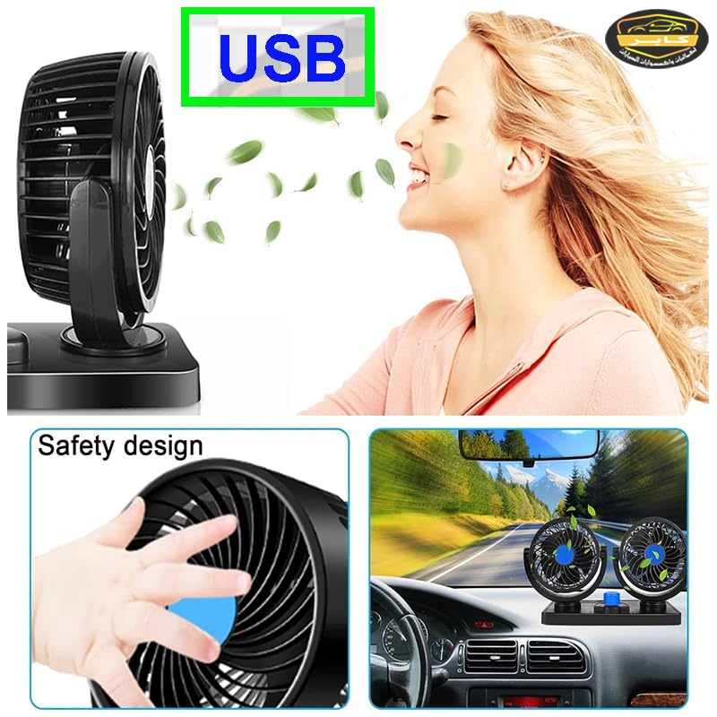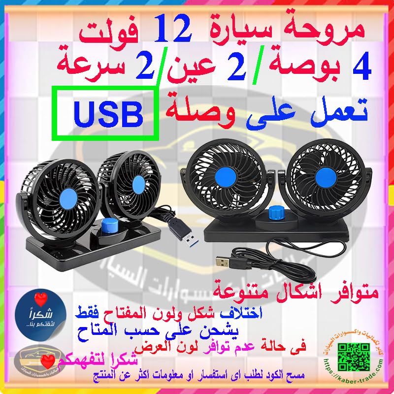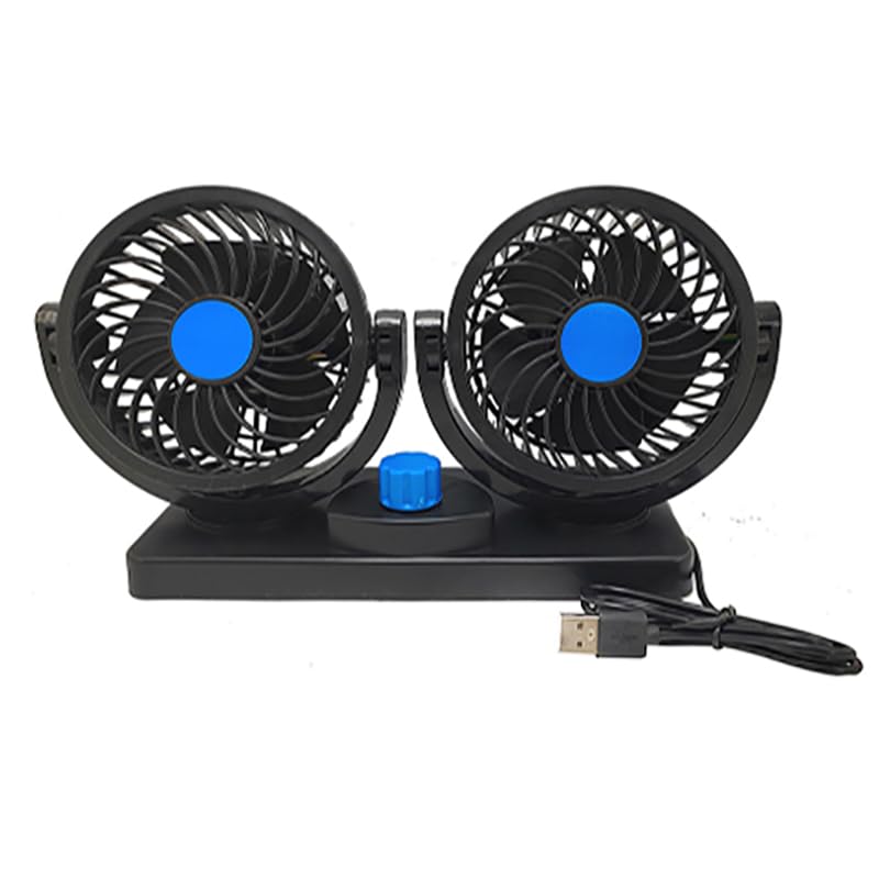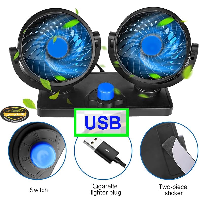 Generic - مروحة سيارة لتبريد الهواء داخل السيارة 12 فولت قابلة للدوران ، بسرعتين مزدوجة الراس تعمل على USB ( وصلة USB ، كود : 5777) - من كابرمصر 2020