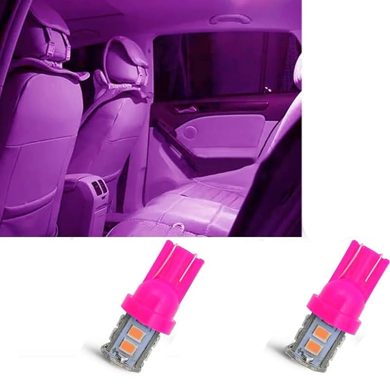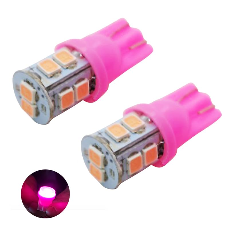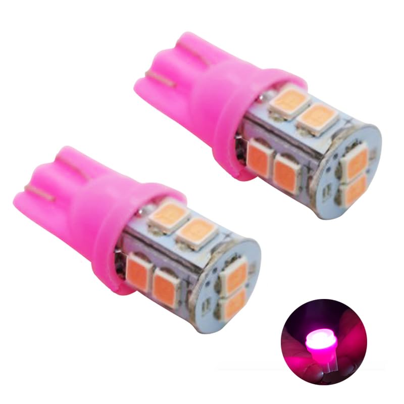 Generic - انوار توقف LED T10 شديدة السطوع لمقصورة السيارة الداخلية ولوحة الارقام والدراجات العادية والنارية، (اضاءة بينك ، 10 ليد ، 2 قطعة ) - من كابرمصر 2020