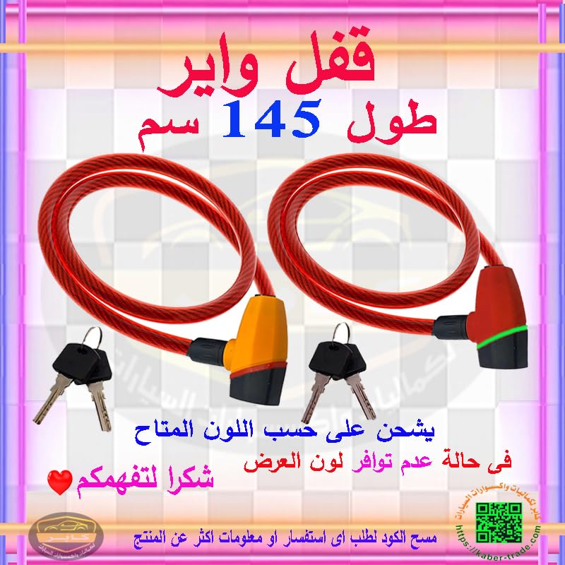 Generic - قفل امان للموتوسيكلات والسكوتر قفل واير امان شديد التحمل مضاد للسرقة ( قفل واير احمر طول 145 سم) - من كابرمصر 2020