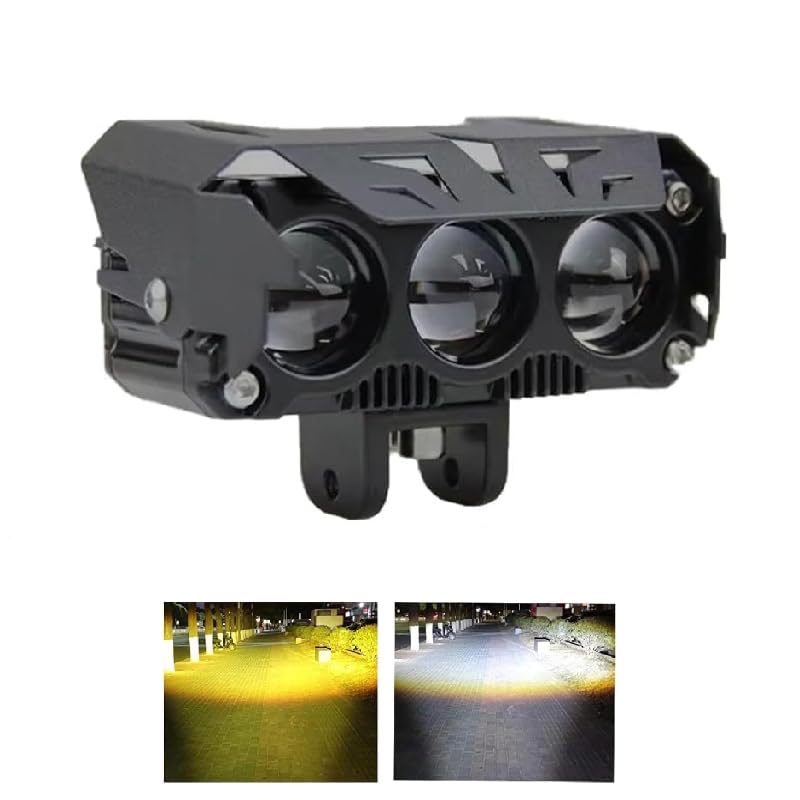 Generic - فانوس شبورة ، مصابيح ضباب ليد ، مناسب للدراجات والسيارات( 3 عدسة ، سلك 2 طرف شعاع أصفر وأبيض ، قطعة واحدة ، كود : 8961 ) من كابرمصر 2020