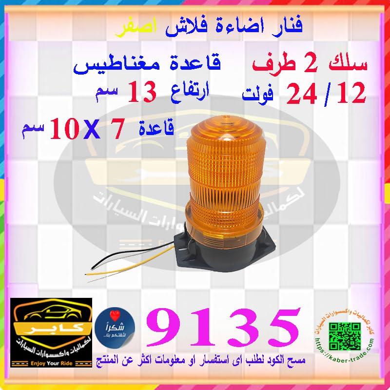 Generic - فنار إضاءة ليد مناسب لجميع انواع السيارات والممعدات ( فنار ليد ، اضاءة اصفر فلاش ، كود : 9135) من كابرمصر 2020