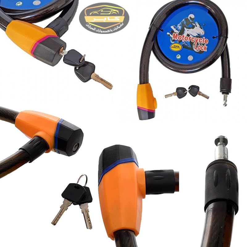 Generic - قفل امان للموتوسيكلات والسكوتر قفل واير امان شديد التحمل مضاد للسرقة ( اسود برتقالى طول 118 سم) - من كابرمصر 2020