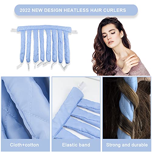 Mevnccola - طوق للرأس اوكتو كيرلر 2022 بدون حرارة، اداة تجعيد الشعر بدون حرارة للشعر الطويل، طوق رأس تمويج الشعر بدون حرارة للشعر القصير، طوق للرأس ناعم بدون حرارة للنوم طوال الليل (ازرق)