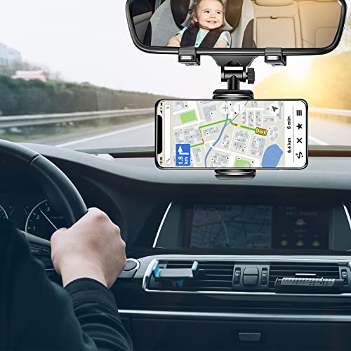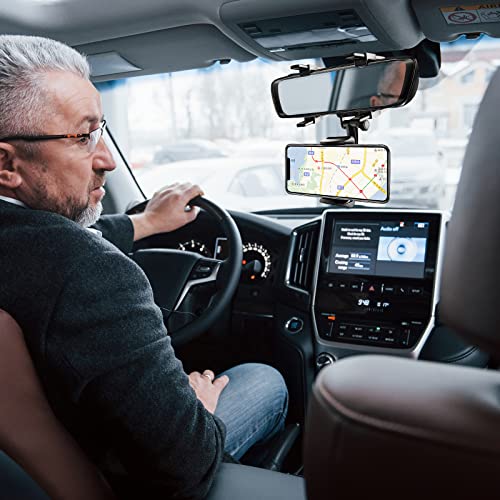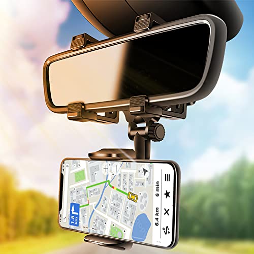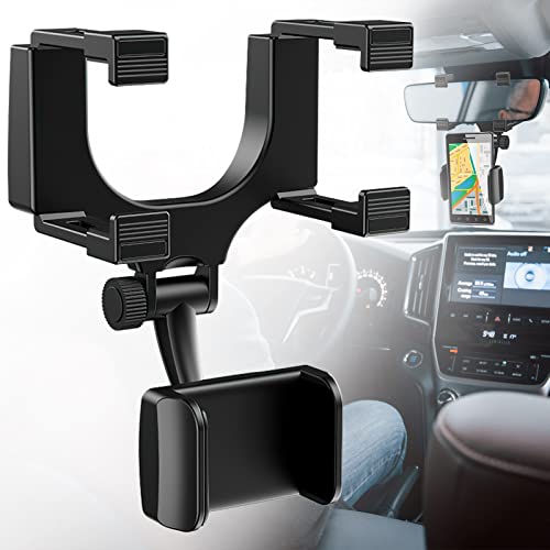 Generic - حامل موبايل للسيارة قابل للتثبيت على مراية صالون متعدد الوظائف بتصميم عالمي، قابل للدوران 360 درجة ويصلح لحمل جهاز GPS ويناسب جميع الموبايلات (اصدار 2022)