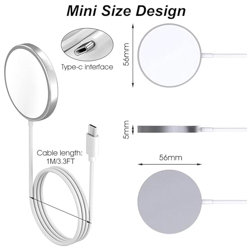 XINFAWE - احدث اصدار 2024 - شاحن لاسلكي مغناطيسي 【معتمد من ام اف اي: قاعدة مغناطيسية الى كيبل شحن USB-C - 1 متر - 3.3 قدم】لايفون 15 - 14 - 13 - 12 - 11 - بلس - برو - ماكس - سلسلة ميني محمولة فضي