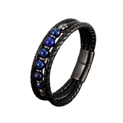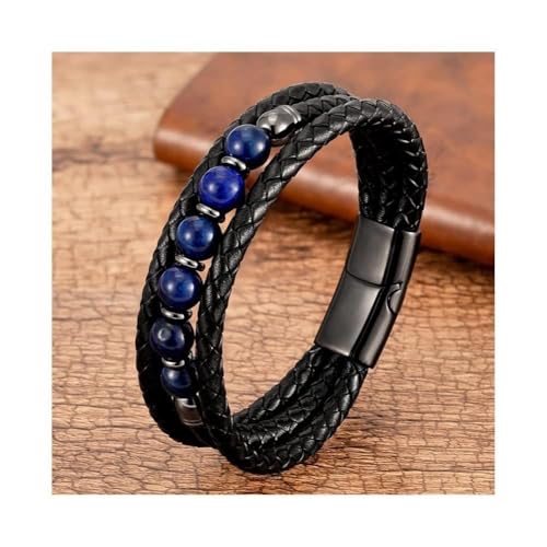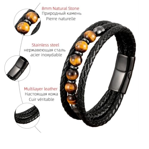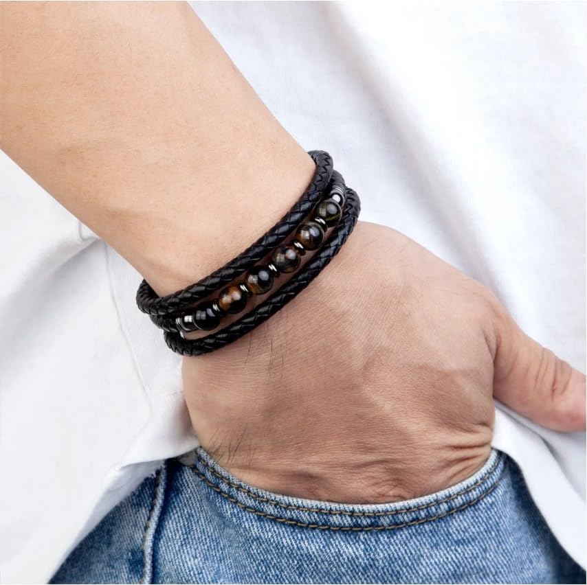 fashion mania - اساور جلدية عصرية متعددة الطبقات للرجال 2024 بنمط مجوهرات دائرية 8 ملم، اساور خرز للرجال والنساء، هدايا عيد الحب