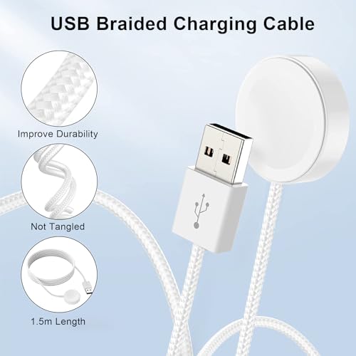 - 【كيبل شحن ممتاز وشحن عالي السرعة】يعتمد كيبل شحن اي ووتش على كيبل شحن مضفر بالنايلون عالي الجودة، مما يضيف متانة إضافية ووظيفة مضادة للتشابك. كما أنه يوفر سرعات شحن خام سريعة، حيث يشحن الساعة بالكامل في أقل من 2.5 ساعة. عندما تكون الساعة مشحونة بالكامل، ستكون محمية وتتوقف عن الشحن تلقائيًا لمنع تلف الساعة بسبب الشحن الزائد. (للحصول على تجربة شحن أفضل، يوصى باستخدام محول الساعة الأصلي أو محول 5 فولت/2 امبير.)