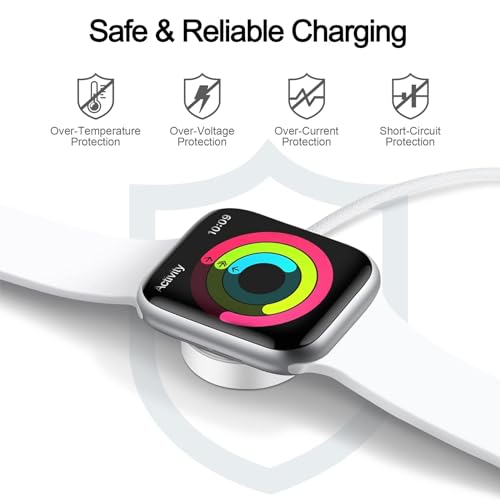 - 【حماية أمان متقدمة】يحتوي كابل شحن ساعة ابل وقاعدة الشحن هذه على حماية مدمجة من التيار الزائد والجهد الزائد وقصر الدائرة الكهربائية والحرارة الزائدة، مما يوفر لك متانة ممتازة وشحن آمن ومستقر. سلك مضفر من النايلون + غلاف ايه بي اس، أداء جيد لتبديد الحرارة، ليس من السهل أن يسخن بعد الاستخدام طويل الأمد.
