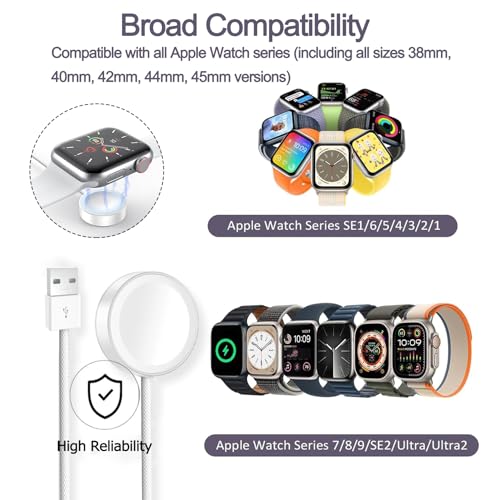 - 【توافق مثالي】يمكن أن يعمل كيبل شحن ساعة ابل بسلاسة مع جميع موديلات سلسلة اي ووتش 9/8/7/6/5/4/3/2/SE/الترا وساعة ابل سبورت وساعة ابل هيرميس. (يتضمن إصدارات 38 ملم 40 ملم 42 ملم 44 ملم 45 ملم)