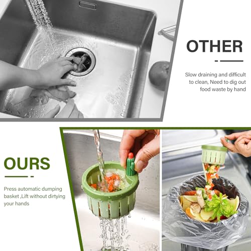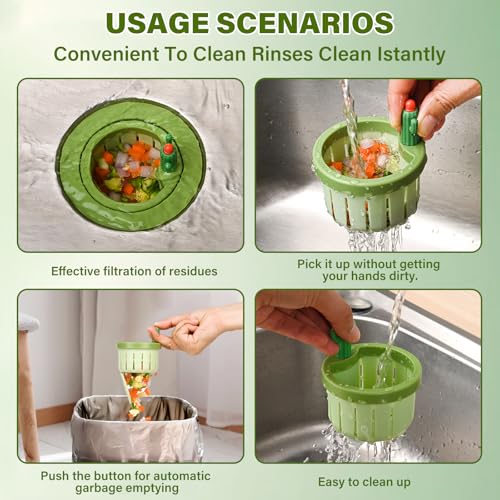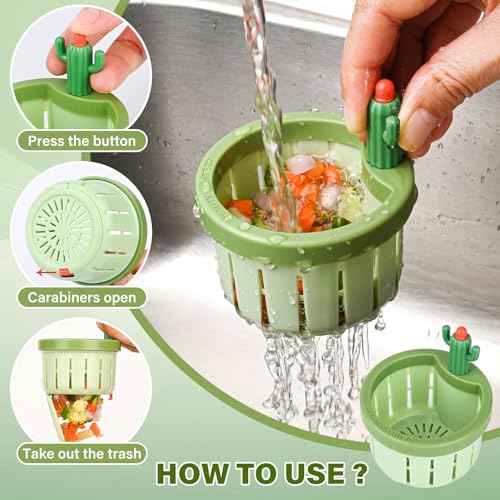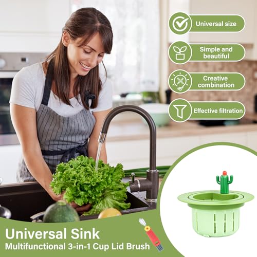 YIQUHUI - فلتر حوض مطور ضغط تلقائي 2024، مصفاة حوض على شكل صبار، جامع نفايات المطبخ واكسسوارات المطبخ، سدادة تصريف الحوض مع فرشا تنظيف، (1، أخضر)