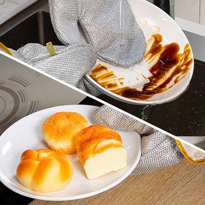 Happy Home - جوانتي غسيل الأطباق السلكي الجديد، قفازات من القماش مع الأسلاك المعدنية لفرك وتنظيف الأطباق من دون التسبب في أي خدوش مجموعة من 6 قطع