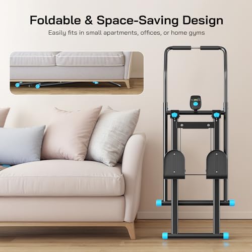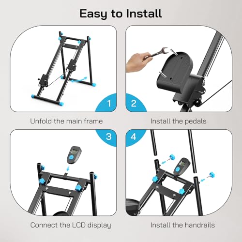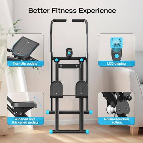 MINENICE - جهاز ستيبر 2025 لتمارين الصالة الرياضية المنزلية، الة تسلق عمودية مع 3 مستويات مقاومة قابلة للتعديل، تدريب متقاطع مع شاشة LCD، دواسة محمولة قابلة للطي، مقود قابل للتعديل