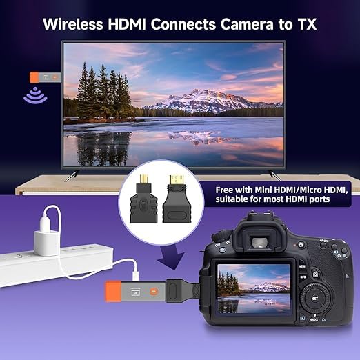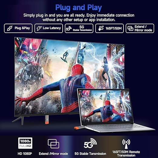 Generic - جهاز ارسال واستقبال HDMI لاسلكي مطور 2025، فك تشفير 4K 165 قدم/50 متر، مجموعة موسع HDMI لاسلكي 1080 بيكسل 2.4G/5G لسطح المكتب والكمبيوتر وتي في بوكس وبلاي ستيشن 5/4 الى التلفزيون/الشاشة/جهاز العرض