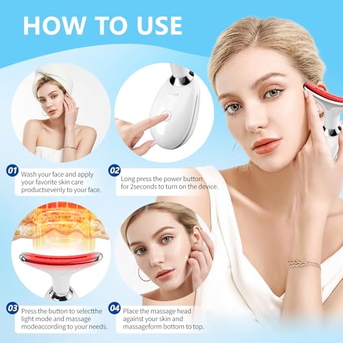 Amkuqzt - جهاز تدليك الوجه والرقبة 2025 الجديد، اداة نحت الوجه، 3 اوضاع واهتزاز لتدليك الوجه لتجاعيد الذقن المزدوجة، للاستخدام المنزلي اليومي (ابيض)