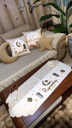 Generic - طقم وساده ورنر رمضان 2026 قطيفة مطرزة – رنر 120×45 + غطائين كوشن 45×45 – تصميمات متعددة وهدايا جاهزة